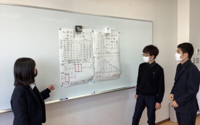 みなさんこんにちは。 数学科の祖父江です。 今回は、7年生と8年生の数学の学習の様子をお伝えします。 前回のブログにあるように、8年生では、現実社会のデータとして、気象庁の公表している気象データを実際に分析し、考察をまとめる課題にチャレンジしました。 グループに分かれて分析するデータソースを決め、各自で実際にデータの分析 …